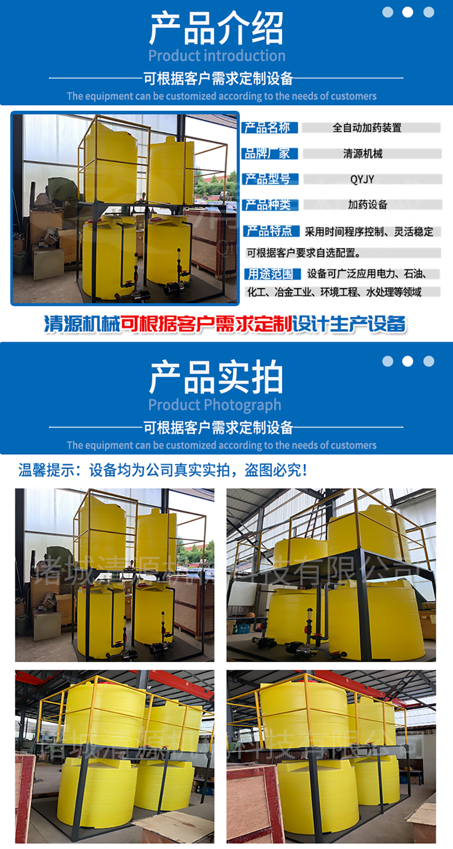 二、全自动加药设备应用范围:电力、石油、化工、冶金工业、环境工程、水处理等领域