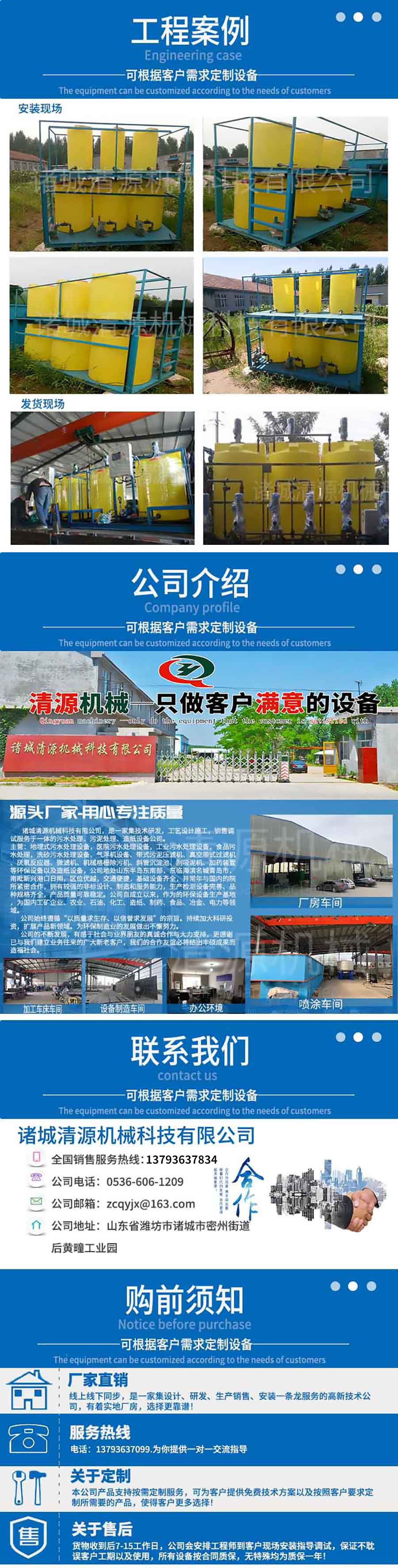 此外,我公司还生产全自动搅拌装置、地埋式污水处理设备、气浮机、污泥压滤机、固液分离设备、造纸设备等其他设备,欢迎订购联系!