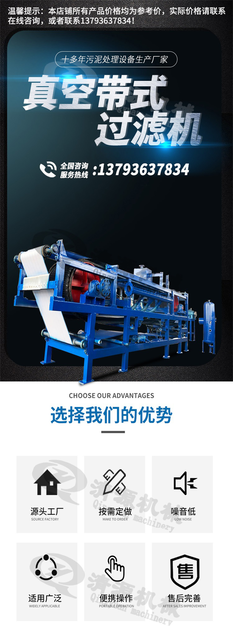 此外,我公司还生产双网浓缩机、地埋式污水处理设备、气浮机、污泥压滤机、固液分离设备等其他设备,欢迎订购联系!