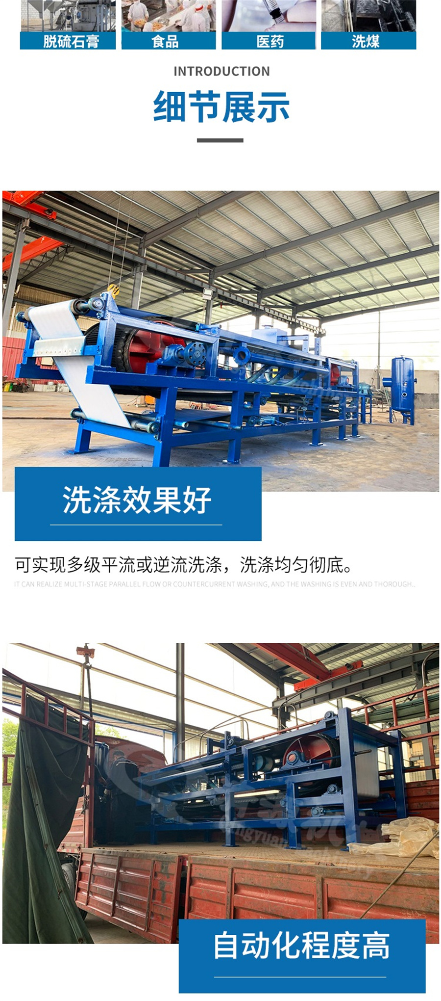 3: 滤工艺方便; 滤饼厚度. 洗水量. 逆流洗涤级数. 真 空度. 滤布速度任意调整,以达到更佳过滤效果。