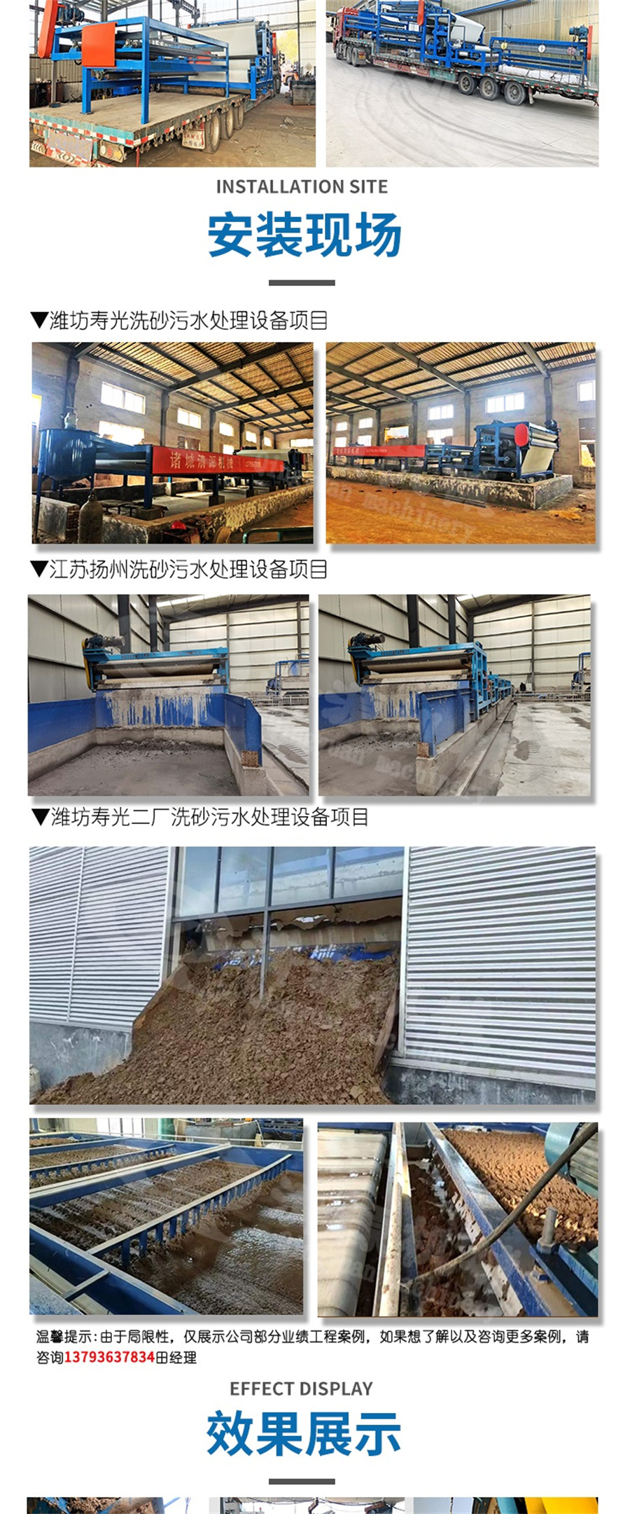 洗沙污水处理设备主要由驱动装置、机架、压榨辊、上滤带、下滤带、滤带张紧装置、滤带清洗装置、卸料装置、气控系统、电气控制系统等组成。