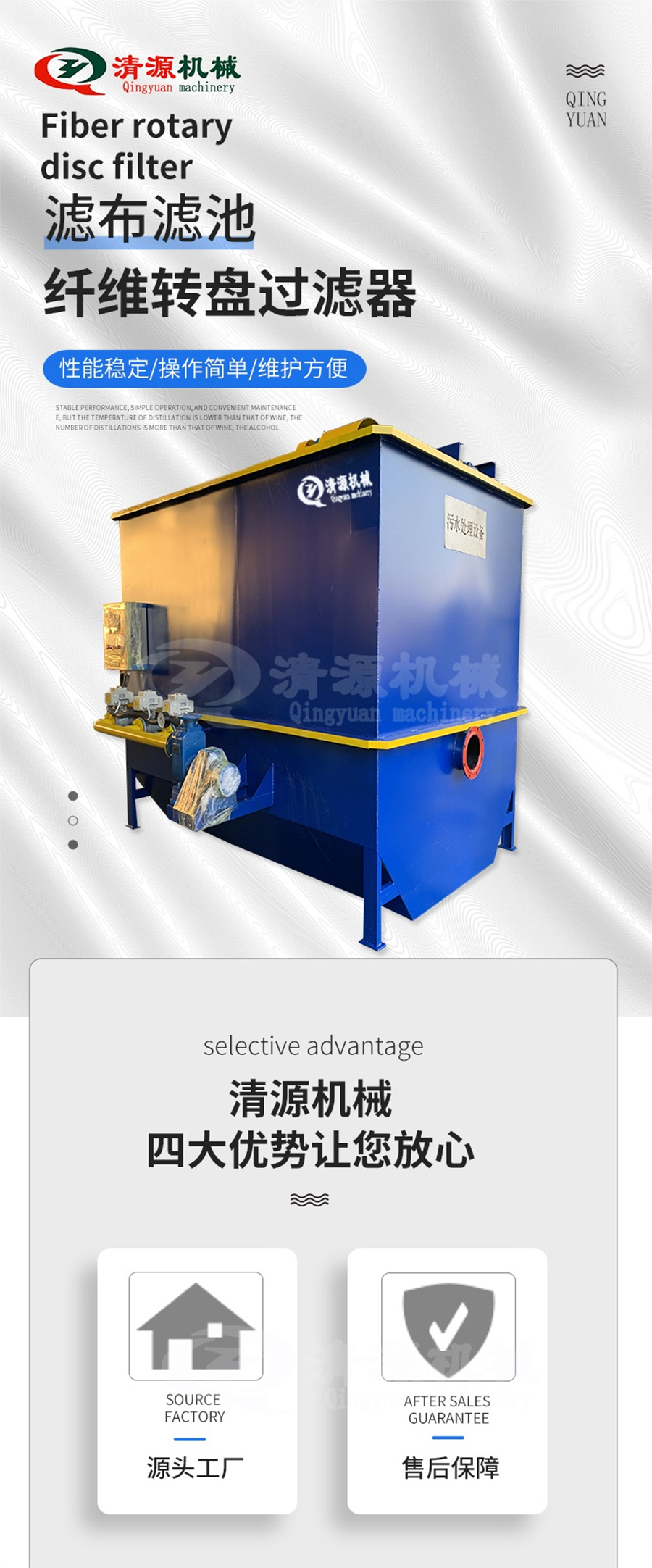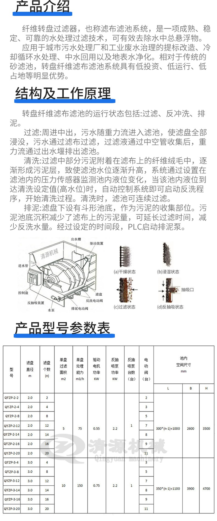 诸城清源机械科技有限公司纤维转盘过滤器特点: