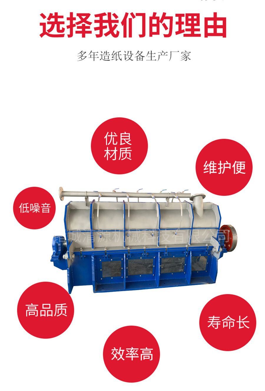 此外我公司还生产碎浆机、压力筛、螺旋蒸煮器、双网浓缩挤浆机、洗浆机等造纸机械设备,欢迎咨询订购!