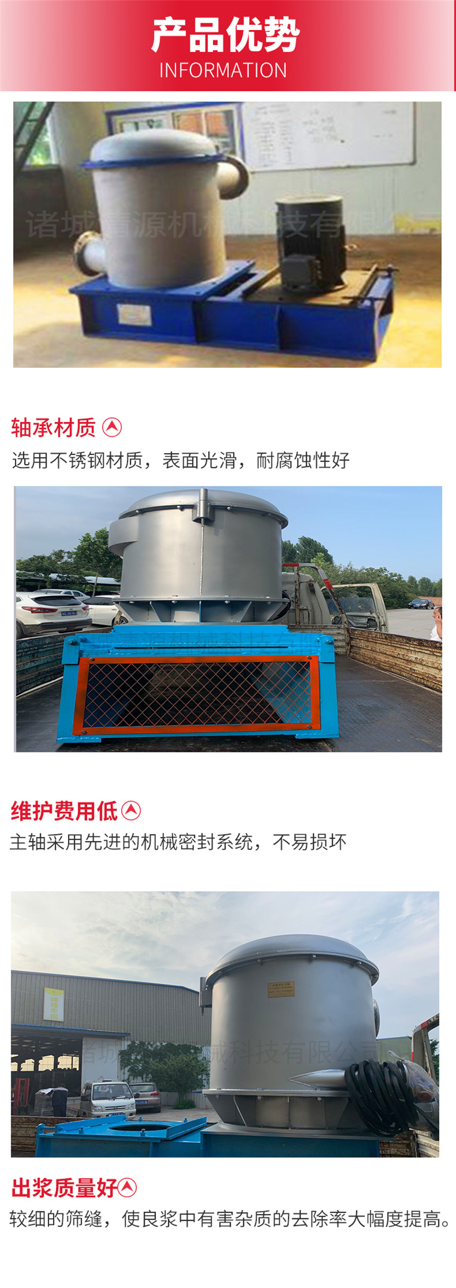 5、良浆质量好:本机筛鼓选用厚不锈钢板精工制造,可选用较细的筛缝,使良浆中的有害杂质(如各种胶念物、云母、腊点、塑料膜等)的去除率大幅度提高。由于采用了较好的波纹形状,虽然缝隙小,但产量不会受太大影响。